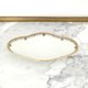 充滿法式復古藝術風格的陶瓷碟,帶花卉邊框和金色細節,稀有的弧度像個小碗一樣深。非常美麗的玫瑰花環裝飾,可以與白色或彩色桌布完美搭配,尤其是綠色、粉色和金色,可用作首飾碟,也可作餐桌佈置。