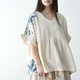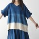 - 【手工藍染】 V領荷葉邊/寬鬆上衣