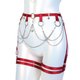 - Witch Belt and Garters Set Red Belt with removable garters is made of elastic straps with satin finish and decorated with silver hardware, chains and pendants. Can be adjusted for a perfect fit.