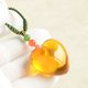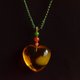 極品材質的金絞蜜,濃郁的蜜意與純澈的金珀的最美麗的相遇造就的如夢似幻的玲瓏心。器型超級飽滿圓潤,仿若天成,通體金黃亮澤,手感溫潤熨帖,金珀部分達到淨水級別,超高的純淨度與通透度,清澈如水,超級通透清澈,光澤油滑,外形有一種優雅的圓滿感。兩面皆可佩戴。表面無一處不圓潤,線條無一處不圓滑,手感無一處不絲柔。玲瓏心裡,蜜意匯聚在靠一邊心房的中部,蜜意濃厚如雲團,似絲絮,絲絲縷縷匯聚如同一片片絲絨,但又成捲曲密集在一起形成堆疊成頁岩云團一般,從下往上看是絨絨的一片,從上往下看有有折疊捲曲的形狀。彷彿紅日將出的天空云霞。蜜意與金珀也產生了絲絲縷縷、細草絨毛細絲一般的交集但這交集清晰,分明界限。玲瓏心如水晶似泉水更如一碧如洗的天空,在這天空的滿目金黃中,一團金黃的云,扶桑之光彷彿承載著希望與生機要破云而出。
