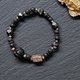 桃花 人緣 招財 轉運珠-鑽石切面黑膽石x火山岩x鑽石切面黑膽石車輪珠x幽靈水晶x椰殼x黑曜石九尾狐轉運珠黃銅手鍊