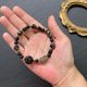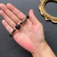 鑽石切面黑膽石8~9mm、火山岩7mm、鑽石切面黑膽石車輪珠約4mm、幽靈水晶14mm寬10mm、椰殼4mm、黑曜石九尾狐轉運珠14~15mm、進口彈性線