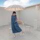 麻質長版洋裝,米白格紋設計,具內襯裏,不用怕曝光,前側有 2 個小口袋,也可多加一件短版上衣,變化成另一種穿搭造型。