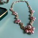 70年代美國古董飾品,採用高品質的電鍍工藝,鍊墜處最深粉紅色,不同色階的粉紅色向上遞減,項鍊具漸層美感。優雅不俗的經典設計,持久保色的電鍍技術與質感設計,收藏價值極高,適合婚禮配戴、派對造型,溫柔婉約。