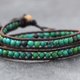 這是手工編織手鍊與棕色真皮繩編織與chrysocolla石頭。 關閉使用黃銅按鈕