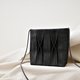 增加雙倍的用布量以純手工熨燙等比例活褶線,為了維持表布乾淨無過多縫線的狀態,用手縫代替機縫創造出最自然的打褶線條,無論從任何角度觀看,都擁有層次分明的立體感以及光影交錯的視覺張力,紮實的工藝結構需要精準計算也非常耗時的技術,即使是小物件也是經由多道繁瑣工序製作而成的包款。整體設計堅持包身的簡約質感,減少使用五金零件與logo標籤。