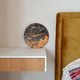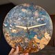 - The wall clock looks like a space planet. The right side of the clock is decorated with copper leaf painting. One of a kind. I set the clock hands on the clock from the presence. Choose from gold or black clock hands. Size: Diameter- 30 cm / 11.8 inch Deth - 6 mm Ready to ship This wall clock like painting on the wall Silent clock movement