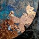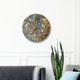 Abstract copper leaf painting wall clock. Made of plywood. The surface is similar a stone. All these colors blend seamlessly into a unique pattern.