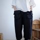 厚磅牛仔黑 雙層大口袋寬褲 - 女長褲 - 棉.麻 黑色