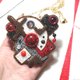 *** 這款美麗的吊墜繡有毛氈珠、編織元素和原始捷克玻璃凸圓形寶石。 掛在鍍金的鍊子上。