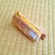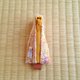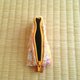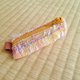 全体的に山吹色や白、うすいピンク、うすい茶色の糸が使われています。