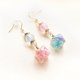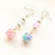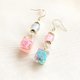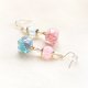清涼柔和感的淡彩冰花耳環,兩邊不一樣的粉藍和粉紅色、乾花和珠子組合,由店主自製風乾的滿天星乾花,封入了"冰塊"內,用金箔作點綴,邊角打磨和封層,透亮光滑,前後看都很美。