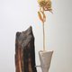 桌上型尺寸 碳化木板約高39cm、花器尺寸直徑約6cm。