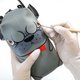 - Gray Pit bull pencil pouch bag. Bag size is approximately19x5x8cm.,This zippered case measures 25cm.,strong No.5 ykk zipper.a long matching strap17-20cm. for easy carrying.and there’s also as all metal loop for attaching the strap when you want in to be a crossbody bag. Hand- painted technique with high quality paints on synthetic leather,exquisite sewing.