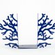 - Decorative metal bookends Blue corals. Coral bookends - Sea theme in your space. Trendy color and atmosphere with just one element. These bookends will create a sea shore space on your bookshelf.