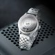 整體採用懸浮式指針結構,與中心渦輪刻紋結合,模擬飛碟起飛時的能量旋渦感。從正面觀賞,如同觀察一枚異星探測艙。從側面看,厚實卻優雅的錶殼線條,彷彿模擬飛行器進出次元通道的空氣動力學設計。