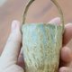 這件迷你乾花器,造型小巧,線條圓潤溫和。作品結合自然落釉的流動感,讓瓶身呈現綠、褐、藍交錯的侘寂層次,彷彿山水暈染的肌理。