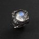 品名:森之夜想 | 天然藍暈蛋面月光石岩石質感中性925純銀戒指