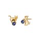 這對鑲有堇青石(三月誕生石)的可愛耳環描繪了貓咪玩耍的場景。它的設計看起來像一隻貓在玩毛線球,爬上去,踢它,玩得很開心。