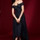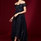 黑膠蕾絲。露肩長洋裝 - 洋裝/連身裙 - 聚酯纖維 黑色