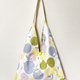 手工日本印花棉布粽型手提包(可雙面使用) 使用日本進口印花棉布,雙面不同印花效果的三角形手提包,造型時尚具有設計感! 含提帶高60公分 袋底寛36公分
