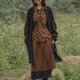 香雲紗拼布在領口、胸前與後背悄然點綴,如樹影斑駁;茸茸毛邊則似落葉邊緣的天然捲曲,透著不經意的軟萌。
