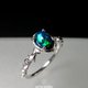 鮮やかな色彩をもったブラックオパールを、唐草の細身のリングにセットしました。