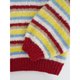 デザイナーがネパールにいた時に、糸の色のサンプルで編み子さんがサクッとストライプを作ってくれたのが始まり。四色の色糸を染めてもらってkapuwa初の全体ボーダーの柄が誕生しました。