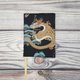 The book cover is made from cotton fabric in dragon and swan pattern. The inside of the book cover is sewn with another two layers of plain colored fabrics. It also comes with a yellow ribbon as bookmark inside.