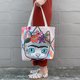 这个包是用帆布布做的。它的灵感来自艺术家弗里达卡罗,他创造了新的角色可爱猫猫。这个尺寸适合出外购物和日常使用。