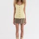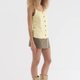 整體版型利落貼身,肩帶適中,搭配復古感藍色鈕子點綴於底色上,具備鮮明的視覺識別度