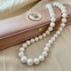 中國浙江諸暨山下湖是全世界最大的淡水珍珠養殖基地,其養殖技術已經領先世界。兩邊最小珠直徑10.5mm到中間最大一顆珠13.0mm的天然淡水冷月白光大珍珠依秩序排列,正圓強光,稀有美好,連綴做成經典的大珠串項鏈,可呈現白月光一般的鮮亮通透,表達女性的溫柔甜美與銀河星際般的浪漫。珍珠品質好,冷月白,又帶炫彩光,拿在手中淨重就有69.1g,全長度約42-43cm。既有傳統的端莊大氣,又有多變而靈動的現代感。好品質的天然無核淡水珍珠,你值得擁有。