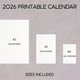 Stay on top of your plans with this 2026 printable wall calendar. Its minimalist design provides clarity and order, making it perfect for home offices, living spaces, or modern workplaces. Instantly downloadable, easy to print, and stylish enough to serve as functional wall décor throughout the year.