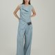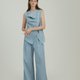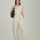 莫奈後花園 斜門襟蕩領背心 半裙長褲套裝