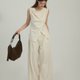 莫奈後花園 斜門襟蕩領背心 半裙長褲套裝 - 背心/無袖上衣 - 其他材質 黃色