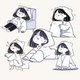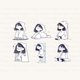 可爱Q版女孩剪贴画、日常放松、透明PNG格式
