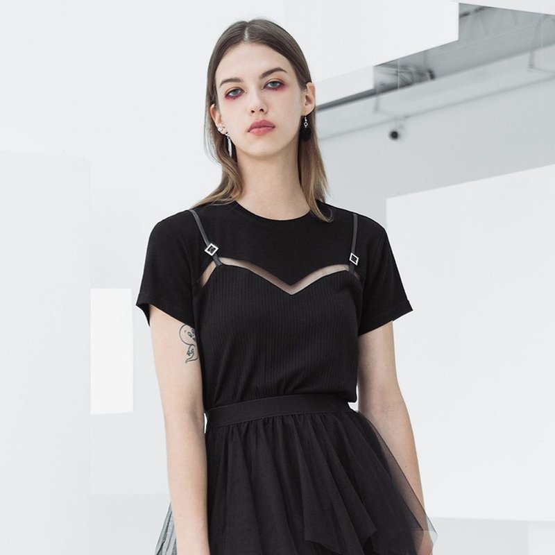 哥德心靈殺手肩帶拼接上衣 / 假兩件設計 / 版型寬鬆 / 即將絕版