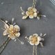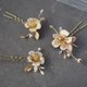 花朵兒與金色的葉子,手工刷染上色,讓它成為你髮上最亮眼的點綴!一套三件,更靈活搭配。