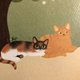 畫面中,因為工作室外巷弄裡的三花貓時常追逐鳥兒,因此身邊有一隻綠繡眼想啄弄牠,驅趕三花貓。