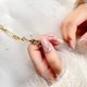 拇指处饰有迷你金属丝蝴蝶结,戴戒指指以项链般的细节,简洁中增添可爱风。