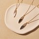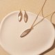 以葉子的形狀線條, 用天然半寶石與微鑲鋯石創造出的別緻葉面綴飾。精緻的手嵌工藝, 美麗的配色。 是一條充滿寫意的項鍊。