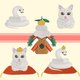鏡餅・へび・香箱座りの猫。