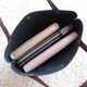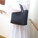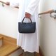 ◎しなやかなダークネイビーのシュリンクレザーにワインカラーのスムースレザーのハンドルを合わせ落ち着いた雰囲気に仕上げました♪