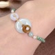 【名稱】冰種白灑金翡翠平安扣編織手鍊
