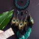 Elevate your space with the enchanting beauty of our Turquoise & Black Peacock Feather Dreamcatcher, a handcrafted treasure that is sure to infuse your home with its mystical charm. This exquisite piece boasts a mesmerizing hoop of 8 inches (20cm) adorned with a web of deep black, interlaced with vibrant turquoise threads that glimmer with an otherworldly glow.