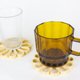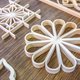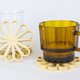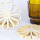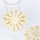 將花窗的工藝轉換,成為優雅的杯墊。一朵朵菊花放置在桌上。小巧可愛又實用~