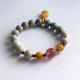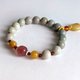 - 天然礦石 阿拉善瑪瑙 . 粉乳灰的晶石 . 漸層排序 . 結合 緬黃玉 . 紅草莓 . 隔珠是紅石榴 . 蜜蠟 吊飾 . 雕刻一隻小蟬 . 一鳴驚人寓意 . 白銀925純銀 輕輕點綴 . 手鍊精緻 . 獨具風雅 。
