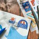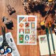 「郵票」這組的設計就是要充分展現感壓貼的特性,以四季為主題的郵票圖案,搭配極具特色的台灣地名郵戳,運用推疊的方式黏貼,呈現更具層次感的效果。
