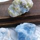 --藍色方解石多數都是碎石狀態,常見跟淺綠的橄欖石共生