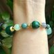 ♡ 材質:綠幽靈、超七(綠草莓晶)、緬甸玉、印度瑪瑙、葡萄石、綠龍晶、紅綠寶、綠瑪瑙、戈壁瑪瑙(阿拉善)、黃銅、日本蠶絲彈性線